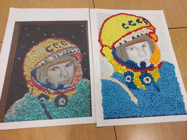 - изготовили для выставки портрет Юрия Алексеевича Гагарина — советского лётчика‑космонавта, первого человека, совершившего полёт в космос. Портрет изготовлен в технике «Мозаичная пластилинография»!
