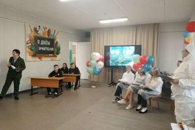 - в пятницу с самого утра в Ругозерской школе звучали песни и на входе любимых педагогов встречали ребята 10-11 класса с открытками и поздравлениями.