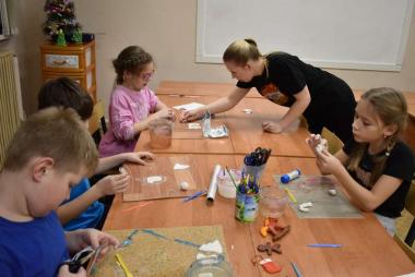 Настоящее волшебство ребята сотворили своими руками! На протяжении нескольких занятия под руководством педагога Трофимовой Анастасии Вадимовны ребята от самой младшей группы до старшеклассников осваивали новый для многих материал — белую глину — простую на первый взгляд, но такую податливую и волшебную! Под чутким руководством педагога ребята лепили уникальные ёлочные украшения: от милых ангелочков и звёздочек до забавных снеговиков и символов наступающего года.