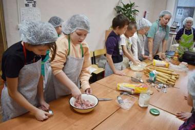 Очередное занятие по карельской кухне состоялось в Центре дополнительного образования. На этот раз Ирина Валерьевна Паевская учила детей готовить жареные пирожки с мясной начинкой. Вообще, в карельской кухне мясо использовали редко, преимущественно по праздникам. Свинину, говядину и курицу заменяли мясом диких животных.
