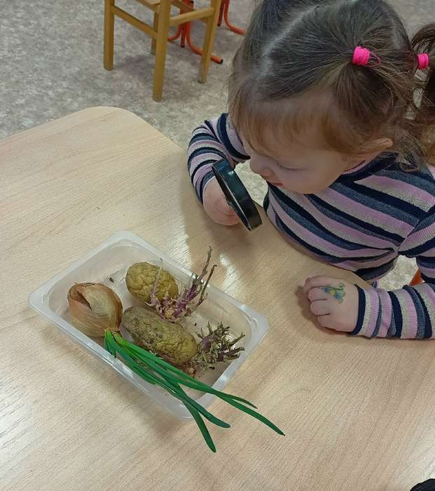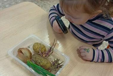 Ребятам представилась возможность примерить на себя роль ученых. В ходе экспериментальной деятельности юные ученые изучали растения. Ребята с удовольствием делились своими впечатлениями, эмоциями, открытиями. Экспериментальная деятельность доставила им необычайное удовольствие Дошколята рассмотрели веточки деревьев, лук и клубни картофеля и пришли к выводу, что для роста и развития растений необходимы почва, вода, солнечный свет и тепло.