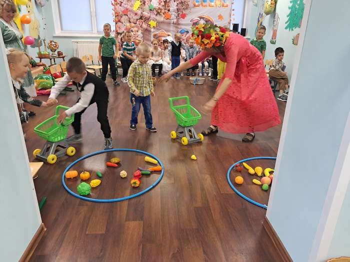 В музыкальном зале царила теплая, доброжелательная атмосфера. В гости к ребятам пришла «Осень-красавица», принесла гостинцы: яблоки, овощи.