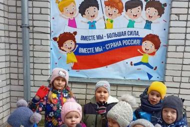 В преддверии Дня Народного единства дети старшей и подготовительной групп детского сада п. Муезерский приняли участие в спортивном развлечении «Когда мы едины, мы непобедимы!». Ребята посмотрели презентацию и послушали рассказ педагога о происхождении праздника. Участвуя в эстафетах: «Сам пройду и товарищей проведу», «Прыгай вместе», «Дружная команда», дети показали не только свою ловкость, но и умение действовать дружно и сплоченно. Ребята провели эксперимент с веточками, и пришли к выводу: «Когда мы вместе, мы - сила и нас не сломить». А еще дети читали стихи и рассказывали пословицы о Родине, смелости и отваге.