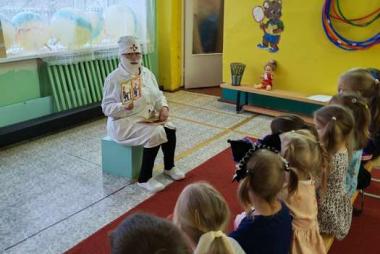 В детском саду п. Ледмозеро встреча доктора Айболита началась с приветствия детей разновозрастной группы «В». Доктор Айболит рассказал о своей профессии, о том, как он помогает людям и почему здоровье так важно. Затем предложил детям поучаствовать в играх по формированию бережного отношения к своему здоровью и соблюдению правил личной гигиены. В игровой форме провел весёлую зарядку с детьми. В конце встречи предложил познавательную викторину "Здоровье-это важно" с вопросами о здоровье, болезнях и уходе за собой. Дети узнали много нового о профессии врача и важности здоровья.