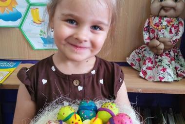 Одна из самых красивых, ярких, интересных традиций – это украшение яиц. Ребята с большим удовольствием изготовили «Пасхальное яйцо» в технике пластилинографии, делали аппликации – «Куличи», "Веточка вербы, слушали песни о весне, играли в народные игры: «Катание яиц» (у кого дальше прокатится яйцо), «Кто найдёт больше яиц».