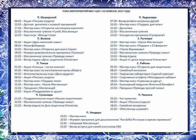 План мероприятий культурно-досуговых учреждений