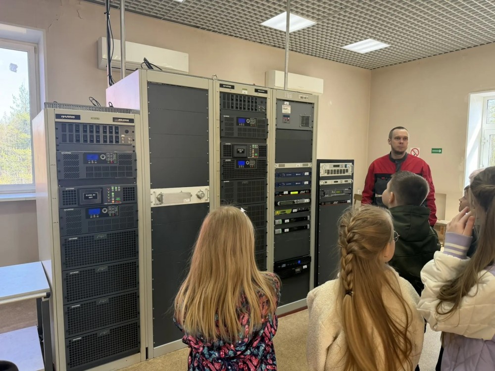 В связи с этим событием 21 апреля 2026 г. коллеги из филиала РТРС развернули настоящую коллективную радиостанцию в поселке Муезерский. И это не случайно, ведь в поселке Муезерский расположена вторая по высоте антенно-мачтовая вышка (235 м.). И первыми её гостями стали неожиданные, но очень вдохновленные посетители.